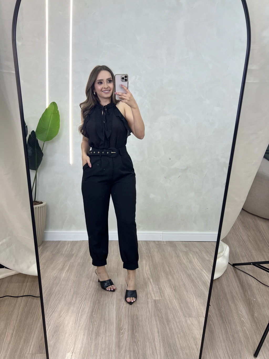 Blusa em tecido musseline. Modelo possui amarração na parte da frente. Detalhes em babados.
