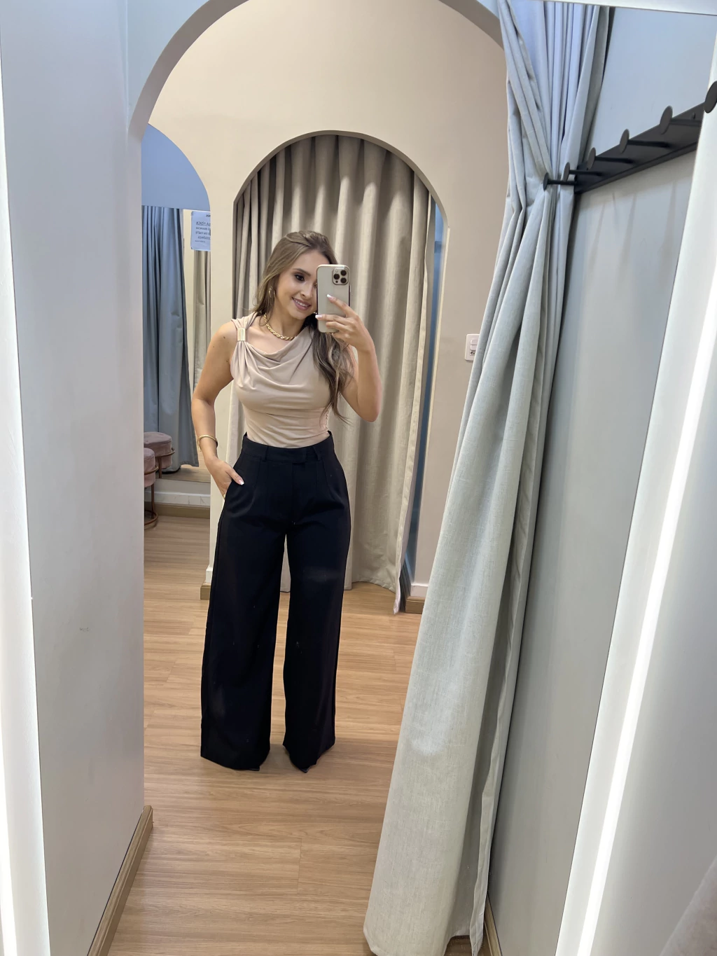 Blusa Peplum : em tecido montaria , com detalhe nas costa.