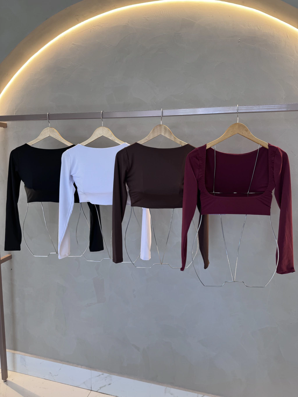 Cropped Suplex Júlia: em tecido suplex, duplo, com detalhe em abertura nas costas