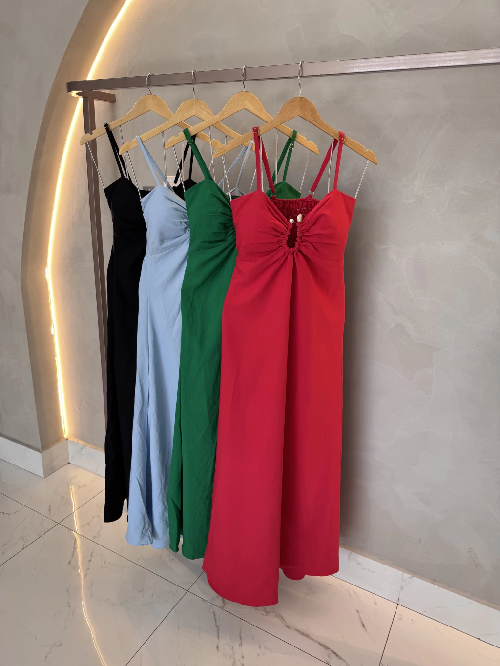 Modelo em tecido amarrant. Possui elástico na parte das costa. Modelo possui detalhes em V e alça de regulagem.