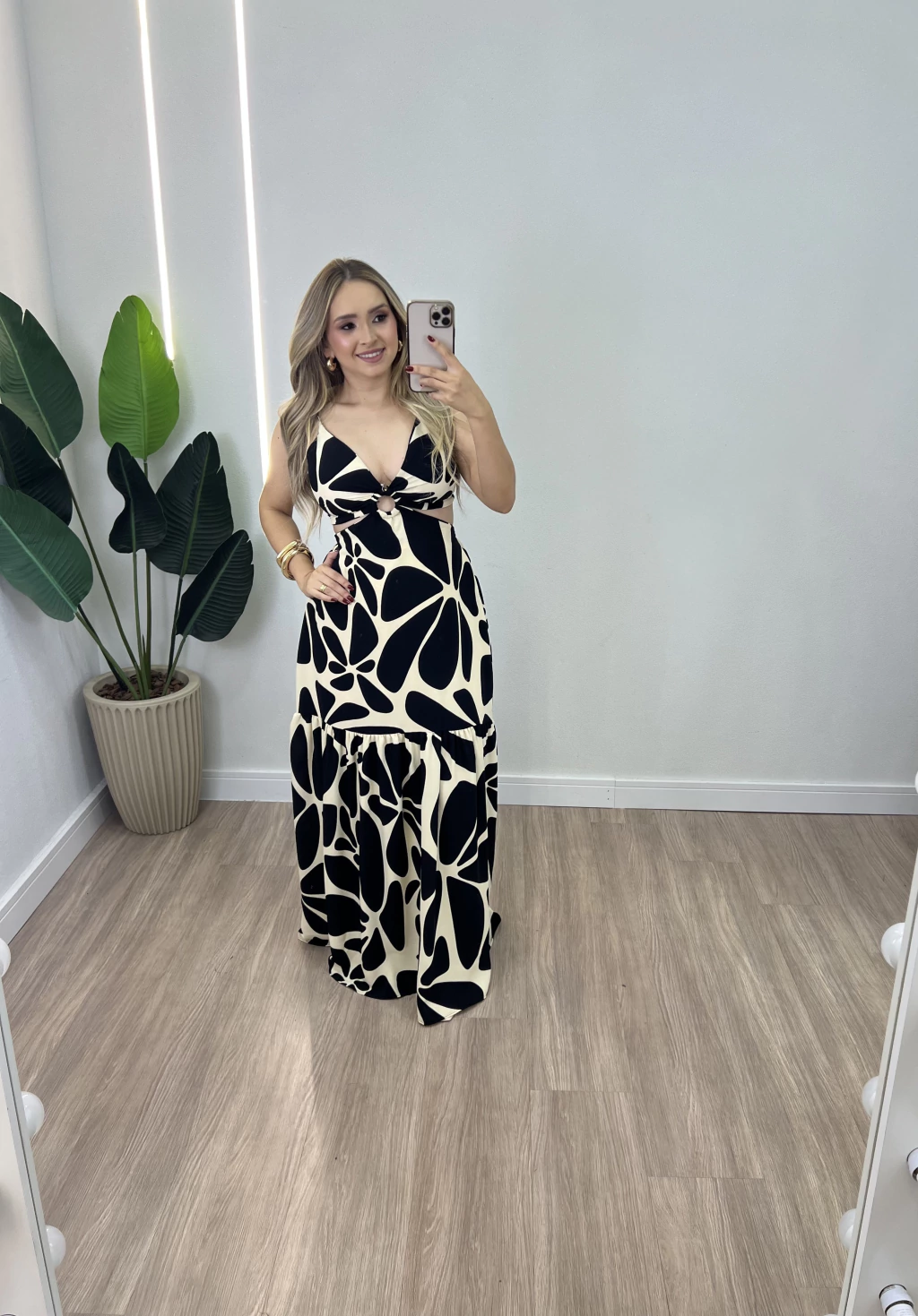 Vestido em tecido crepe dunna, e amarração nas costa, com ajuste nas alcinha.