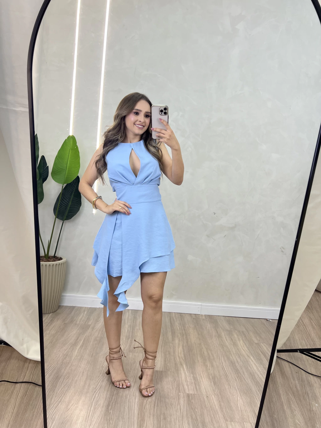 Vestido em tecido Amarrant. Possui zíper e amarração na parte das costas. Possui fecho em botão na parte da costa