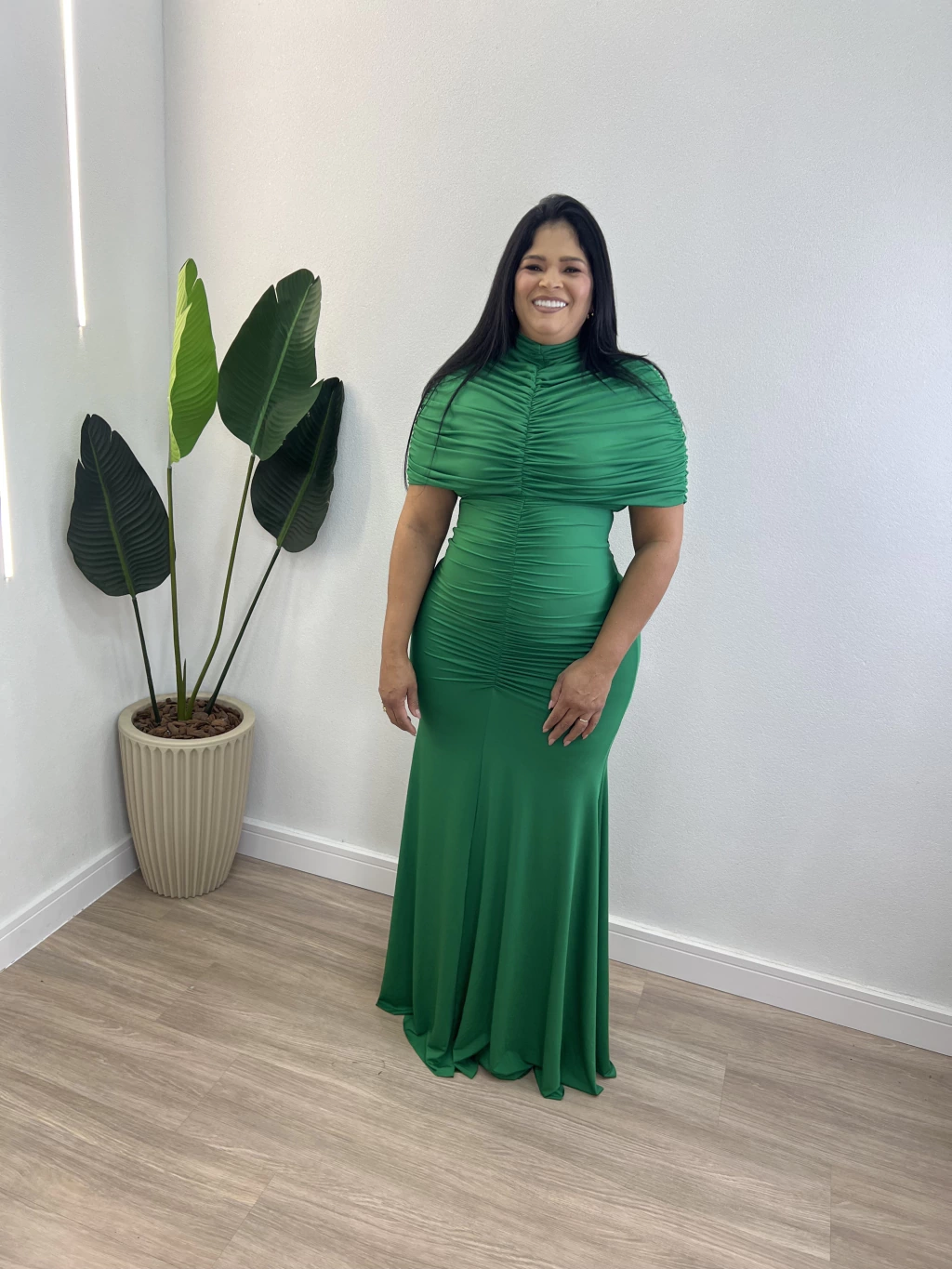 Vestido em tecido poliamida duplo, sem bojo. Modelo drapeado.