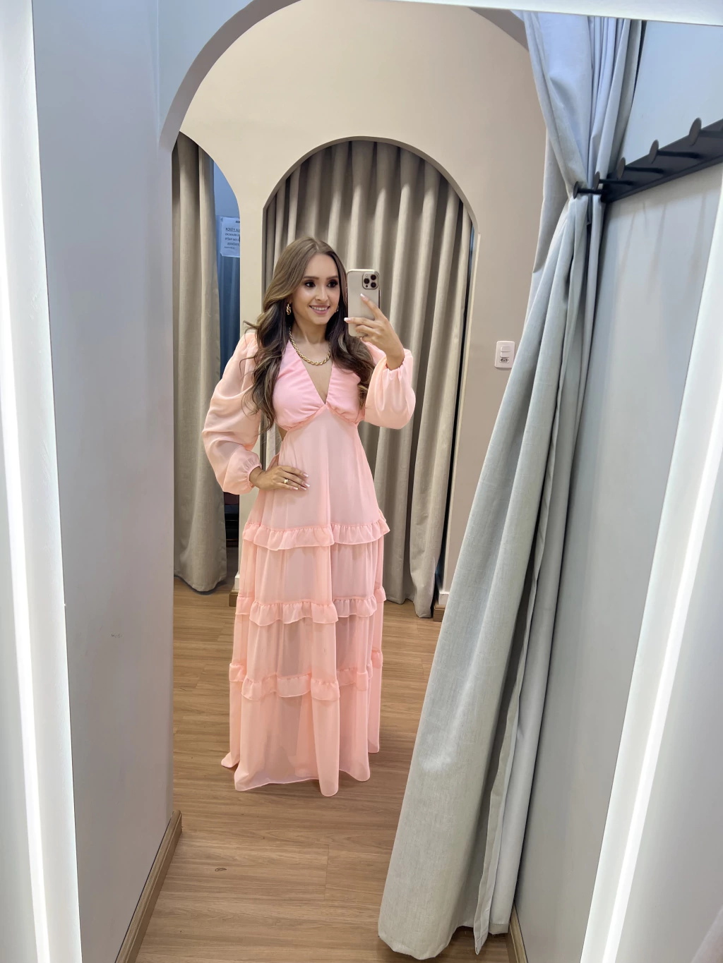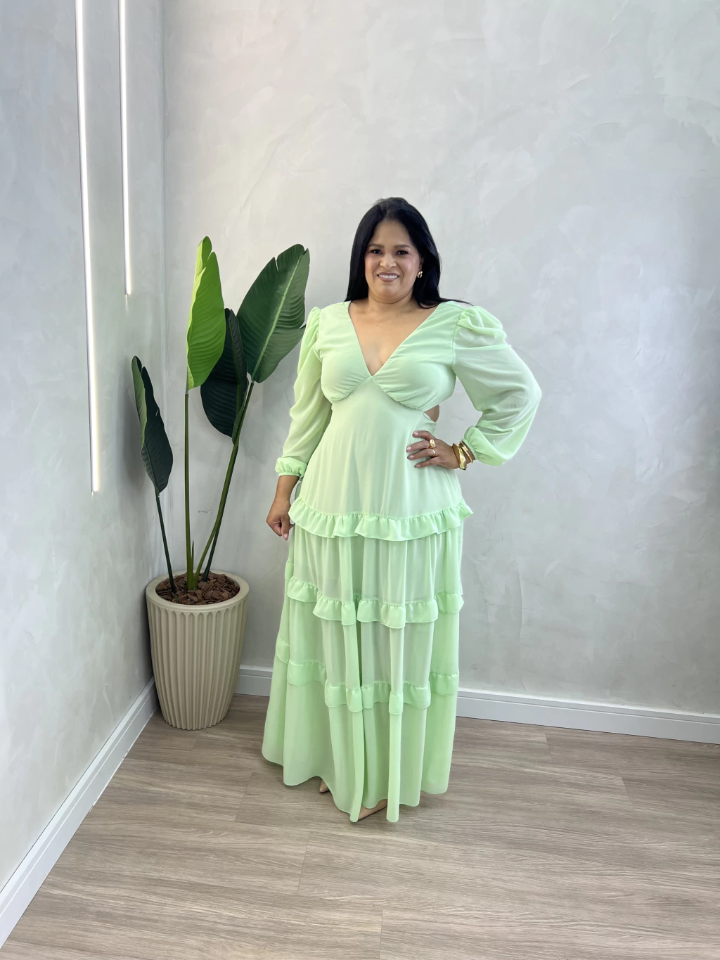 Vestido em tecido crepe. Não possui bojo, e amarração nas costas. Forro interno. Caimento perfeito no corpo.