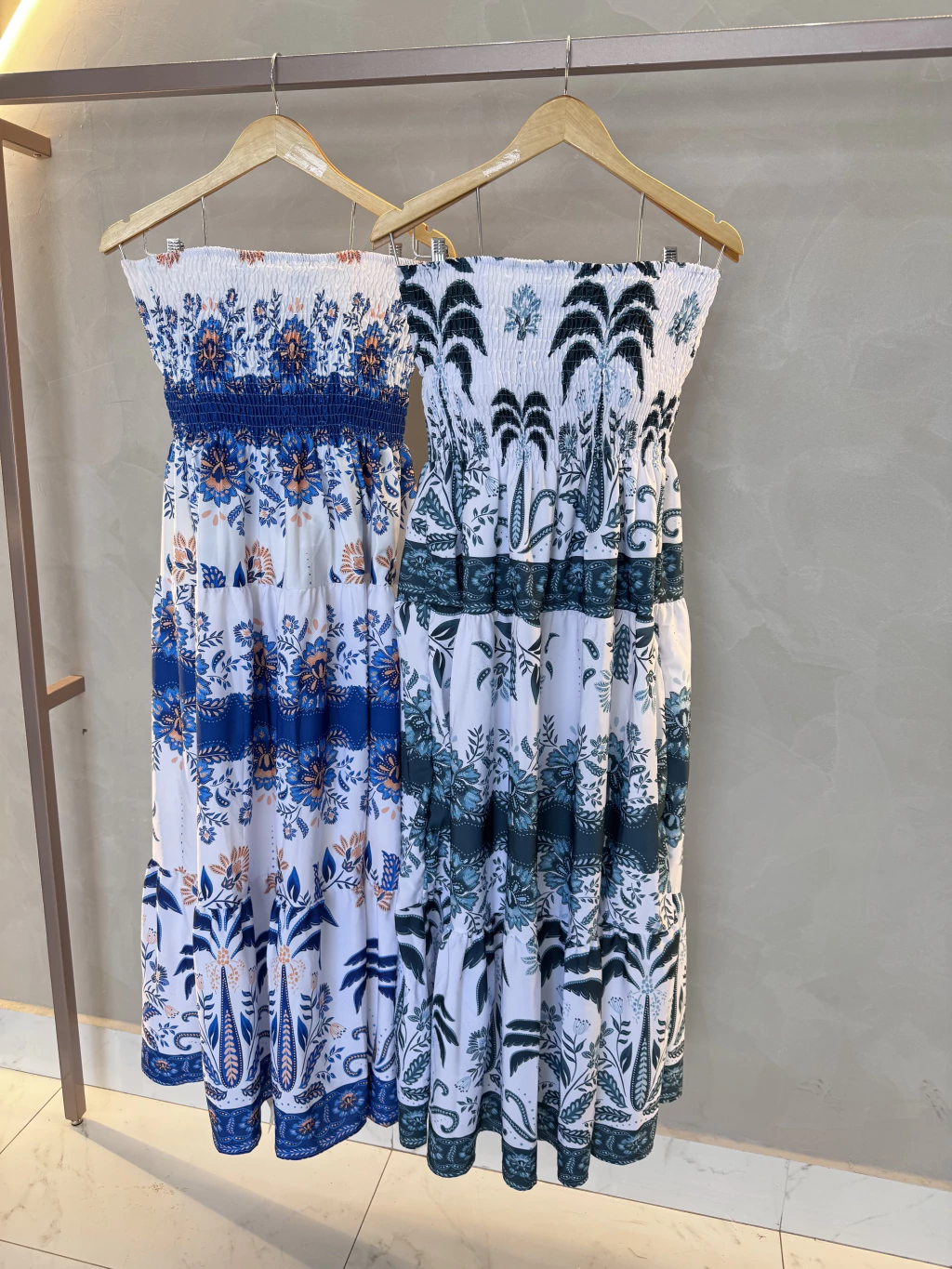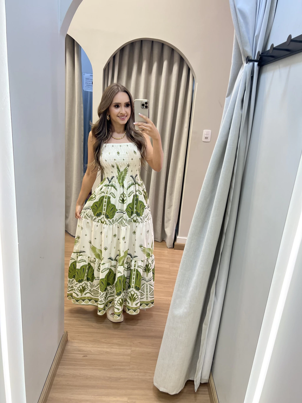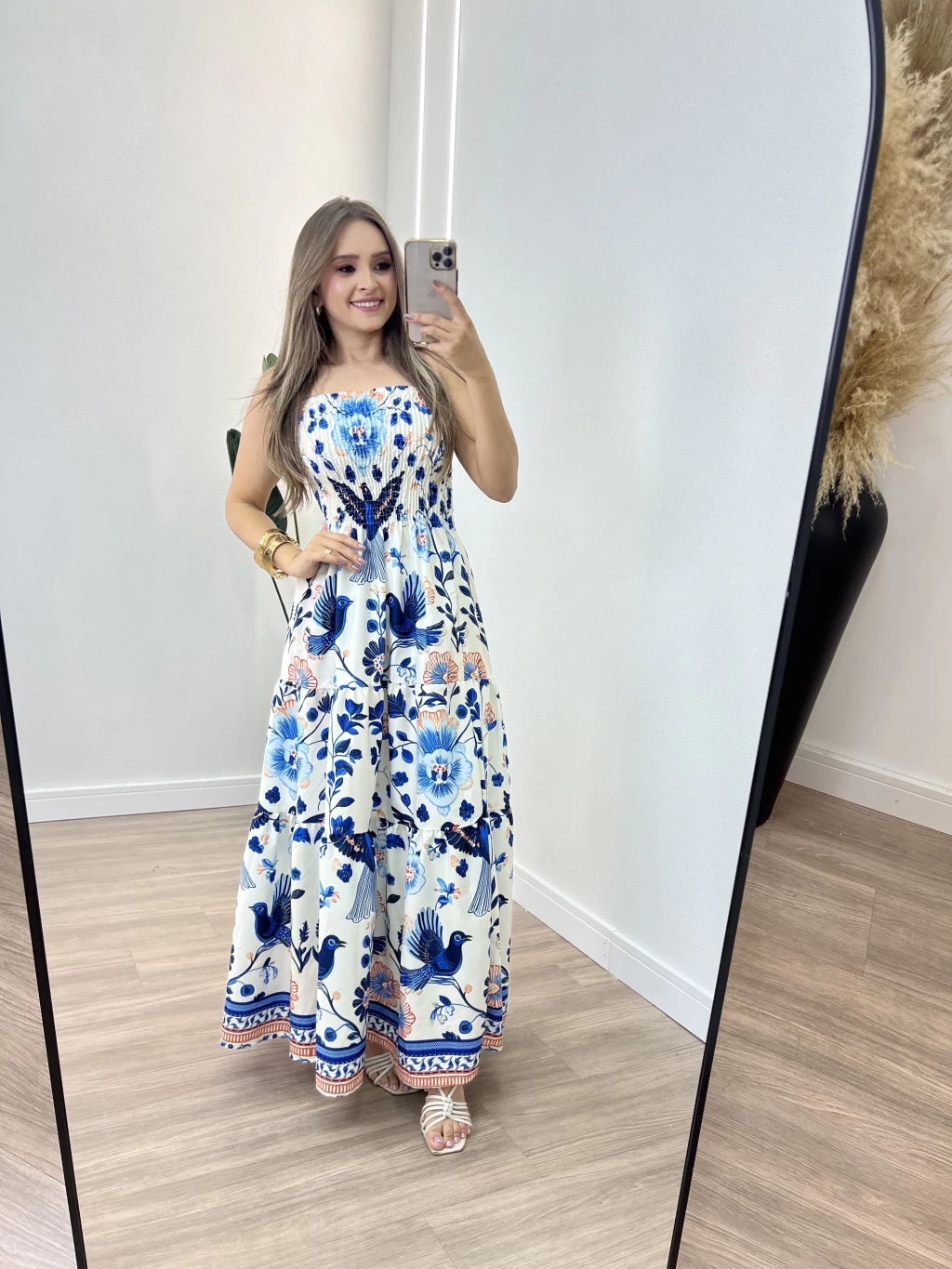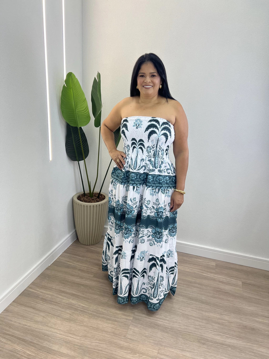 Vestido Tereza em tecido crepe , modelo alongado, modelo tomara que cai. Detalhes todos em lastex nos busto